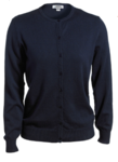 Corporate performance jewel neck cardigan is charming and has a flattering silhouette. The Cotton/acrylic blend has a soft and smooth drape. Perfect for special events or an alternative to an office suit coat. Embroiders well. Companion style is #4073